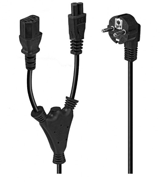 Questo cavo splitter è ideale per alimentare più dispositivi da una fonte di alimentazione. Il connettore IEC C13 si adatta a molti dispositivi come computer, monitor, stampanti e molti altri dispositivi con porta IEC C14. Il connettore C5 (Mickey Mouse) è ideale per il collegamento di un alimentatore per notebook.